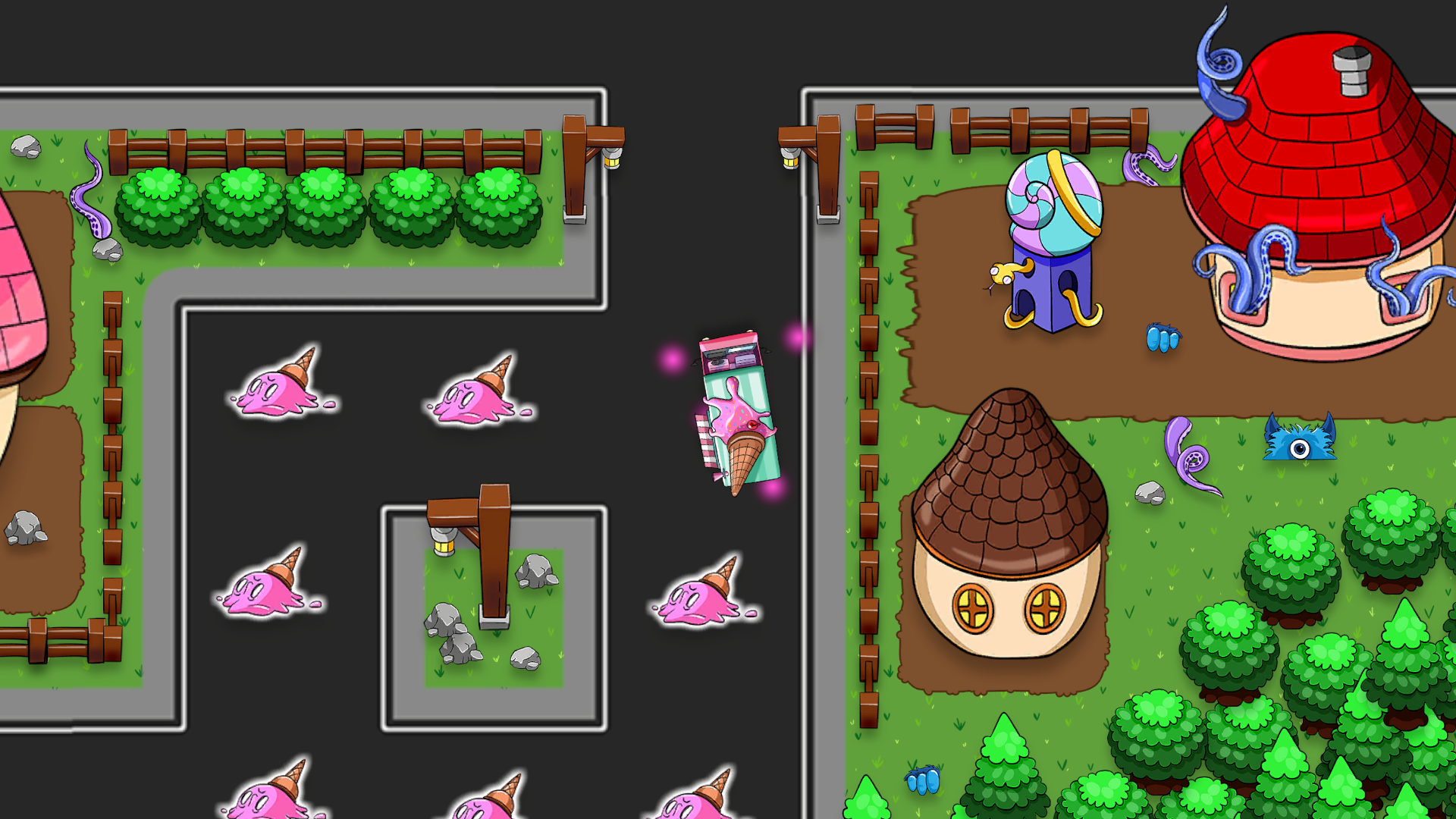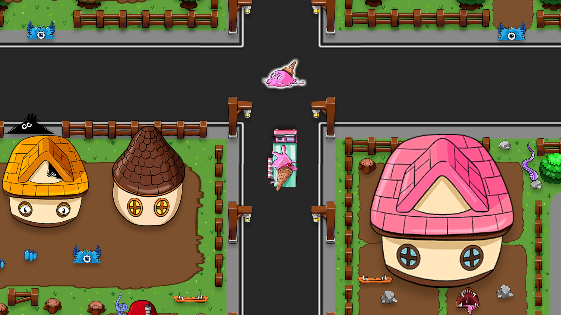 Monsterhood Delivery is a fun top-down game set in a quirky monster village. Take on the role of a delivery hero and pick up ice creams to deliver to the blue and black monsters. Navigate the village, complete all deliveries, and finish the game successfully. A simple, lighthearted adventure full of charm and monster mischief!