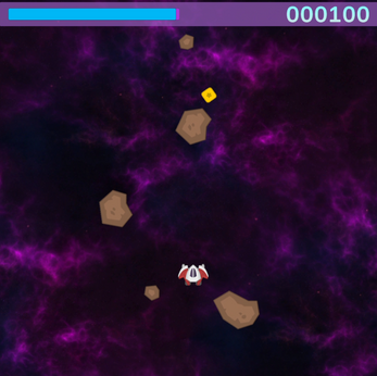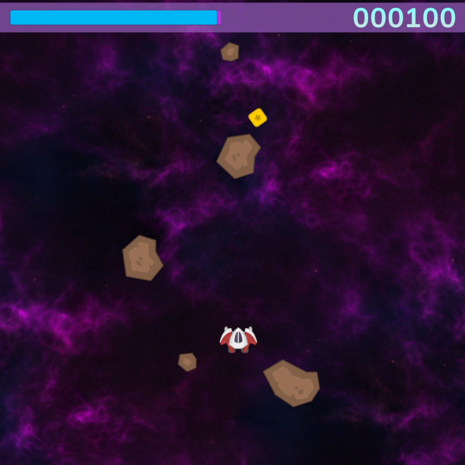 Stay sharp — enemies never stop shooting, and every hit chips away at your health bar. Once your health hits zero, your ship is destroyed… and it’s game over.